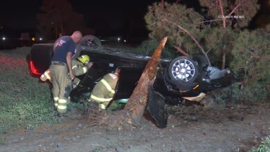 Tustin: Firefighters Rescue Driver Trapped In Overturned Vehicle Following Street-Racing Crash