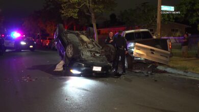 Santa Ana: Rollover Crash Damages Parked Cars