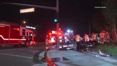 Irvine: Firefighters Free Victims Trapped In Car After Crash Into Pole